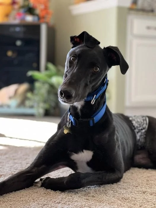 "She's just got the best personality, and SO MUCH personality! She's sweet, loves everyone, and is silly and playful and goofy. She's got the greyhound smile, and the greyhound lean, but she's also just a little extra sassy in her own way. And she's *smart.*"